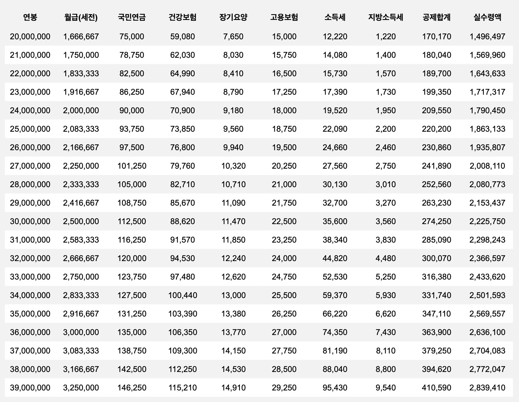 연봉 1,000만 원부터 1억 5000만 원까지 정리했으니 아래 버튼을 눌러서 본인 실수령 월급을 알아보세요.