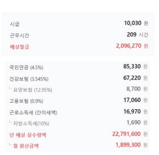 월급= 시간당 최저임금 x209시간(월근로시간)
